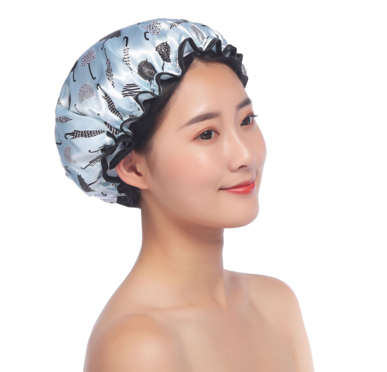 Bonnet de douche européen de grande taille en satin double couche pour laver le visage, chapeau de douche imperméable