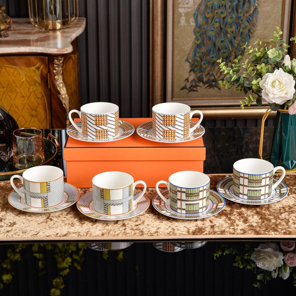 Ensemble tasse et soucoupe à café en céramique européenne, en porcelaine fine avec technique de gravure, pour le thé de l'après-midi, tasse de bureau avec emballage cadeau