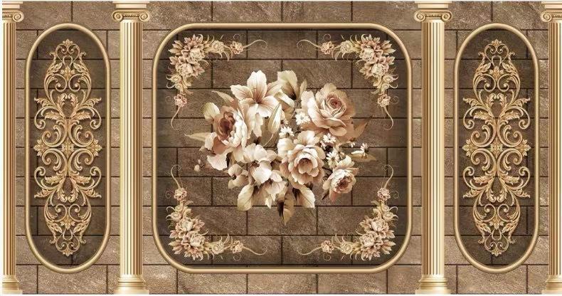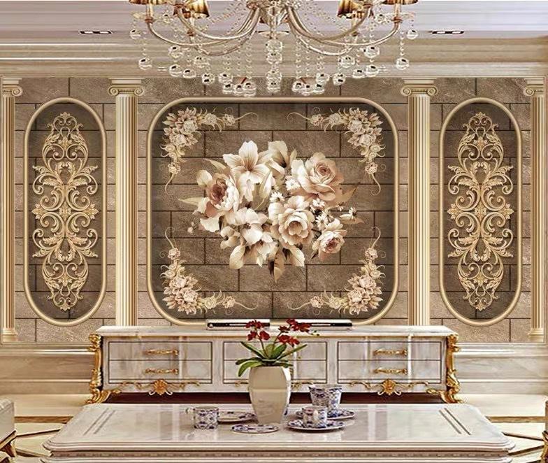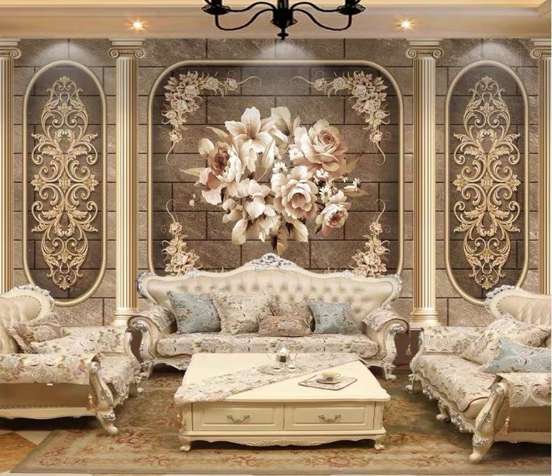 Papier peint mural de luxe pour salon, canapé, télévision, chambre à coucher, chevet, télévision, motif classique européen