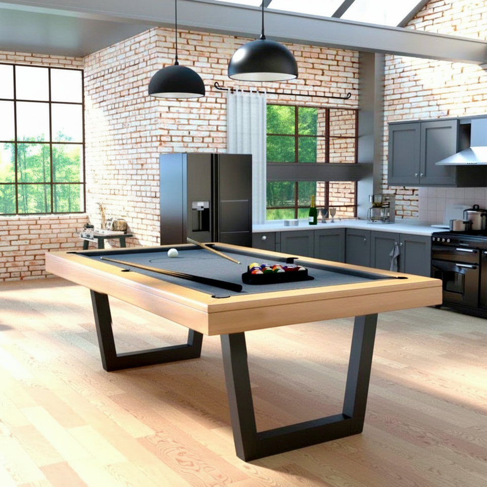 Table de billard et de snooker de luxe sur mesure en bois massif et cuir, convertible, de style européen, 9 pieds