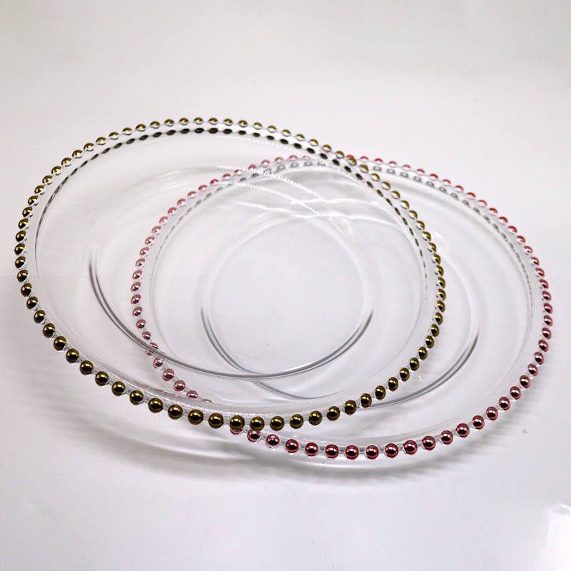 Nom du produit:Européenne de mariage créatif verre clair or ruban perlé dîner plaques