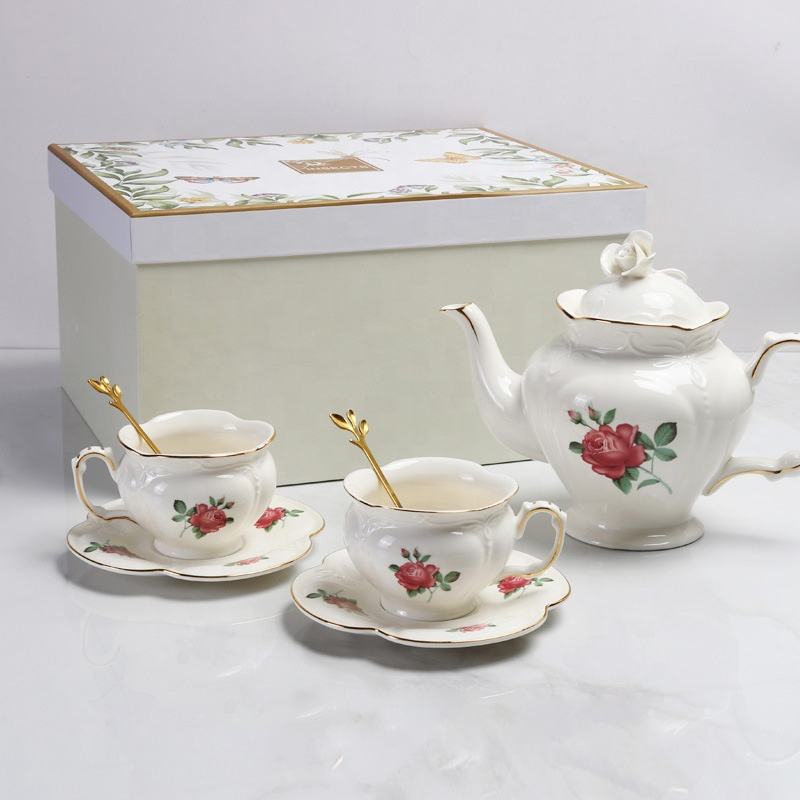Service à thé en porcelaine écologique à motif de fleurs européennes avec couleur et logo personnalisés Boîte cadeau promotionnelle incluse
