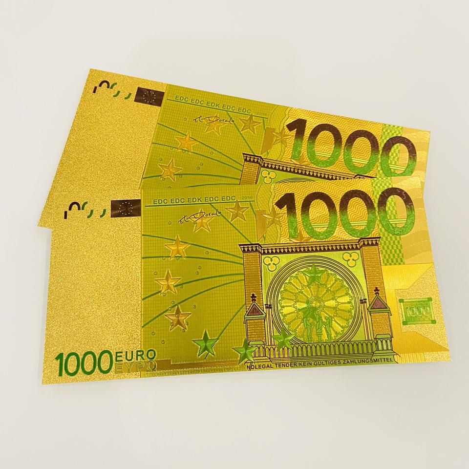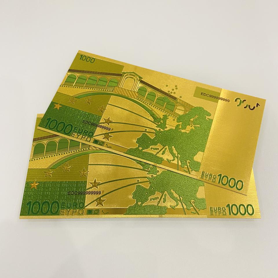 Billet de banque européen en feuille d'or 1000 euros, pièce commémorative plaquée or 24 carats pour collection, billets de banque en feuille d'or