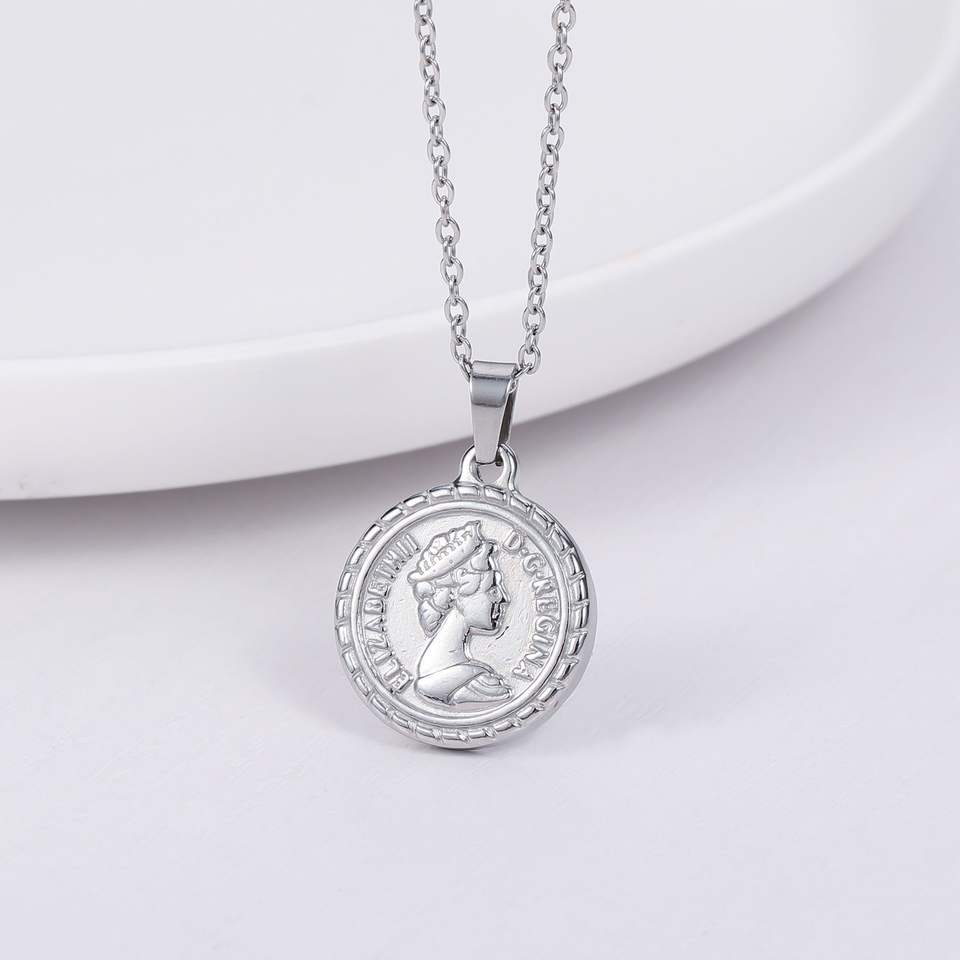 Pendentif de pièce de monnaie de Portrait plaqué or européen collier en acier inoxydable résistant à la décoloration
