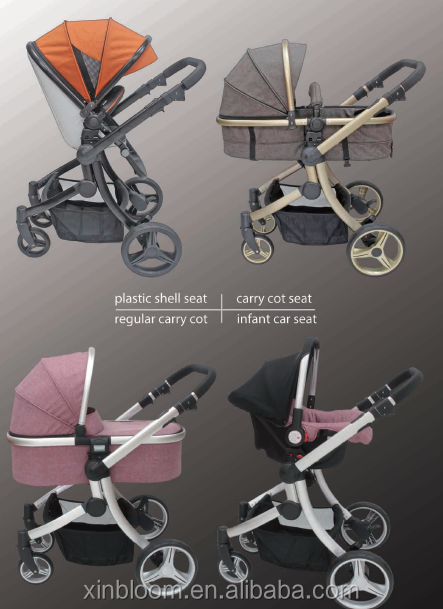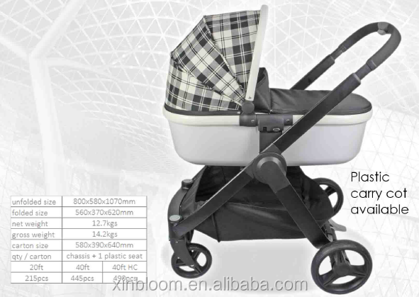 Poussettes Bébés de Qualité Européenne avec Nacelle en Plastique, Landau de Luxe 3 en 1 avec Châssis Réglable en Hauteur pour Bébé TS16
