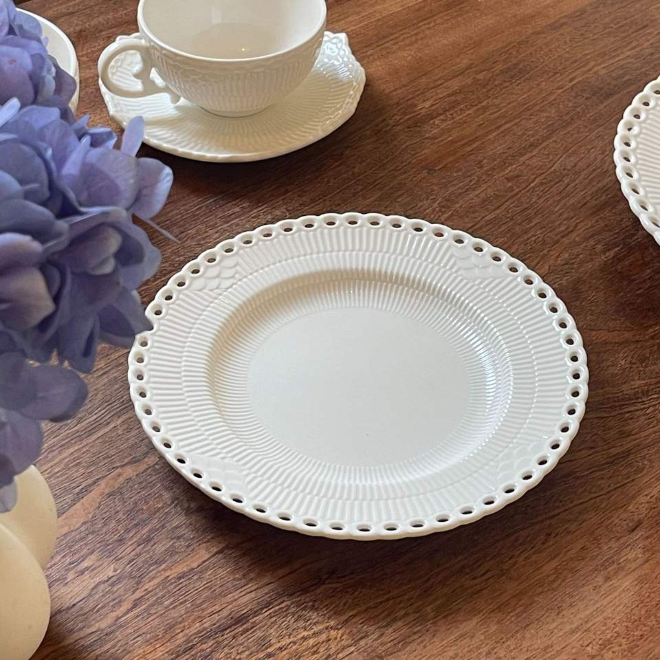 Ensemble d'assiettes à dîner en céramique blanche à bord évidé européen assiette blanche baroque de style élégant et plat pour événement