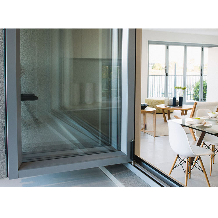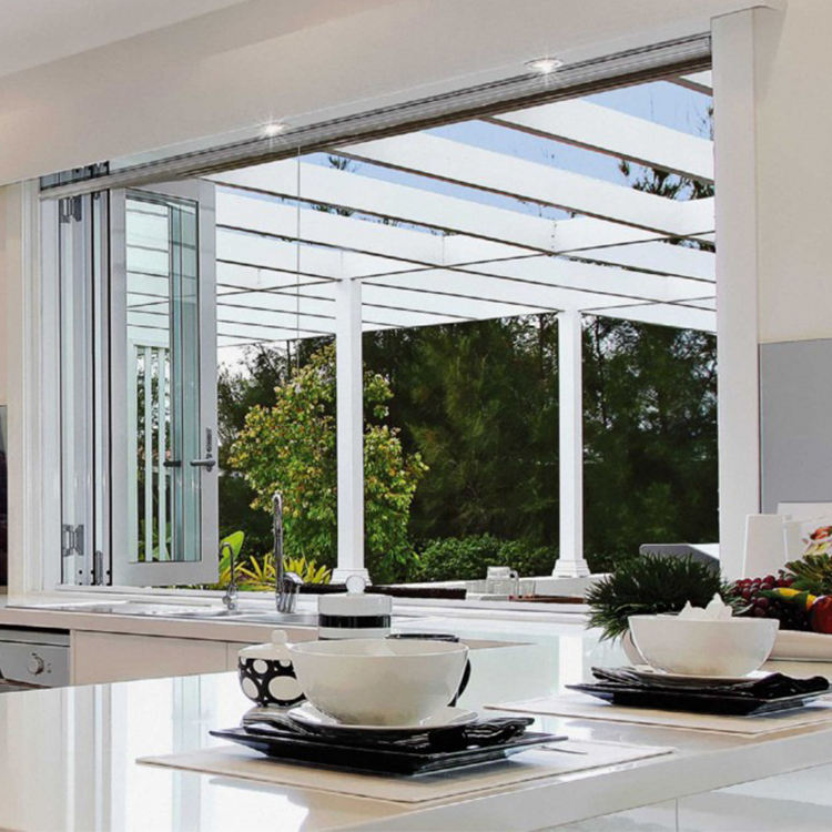 Maison européenne Grande baie Verre trempé Aluminium Grand accordéon de cuisine Barre de fenêtre pliante