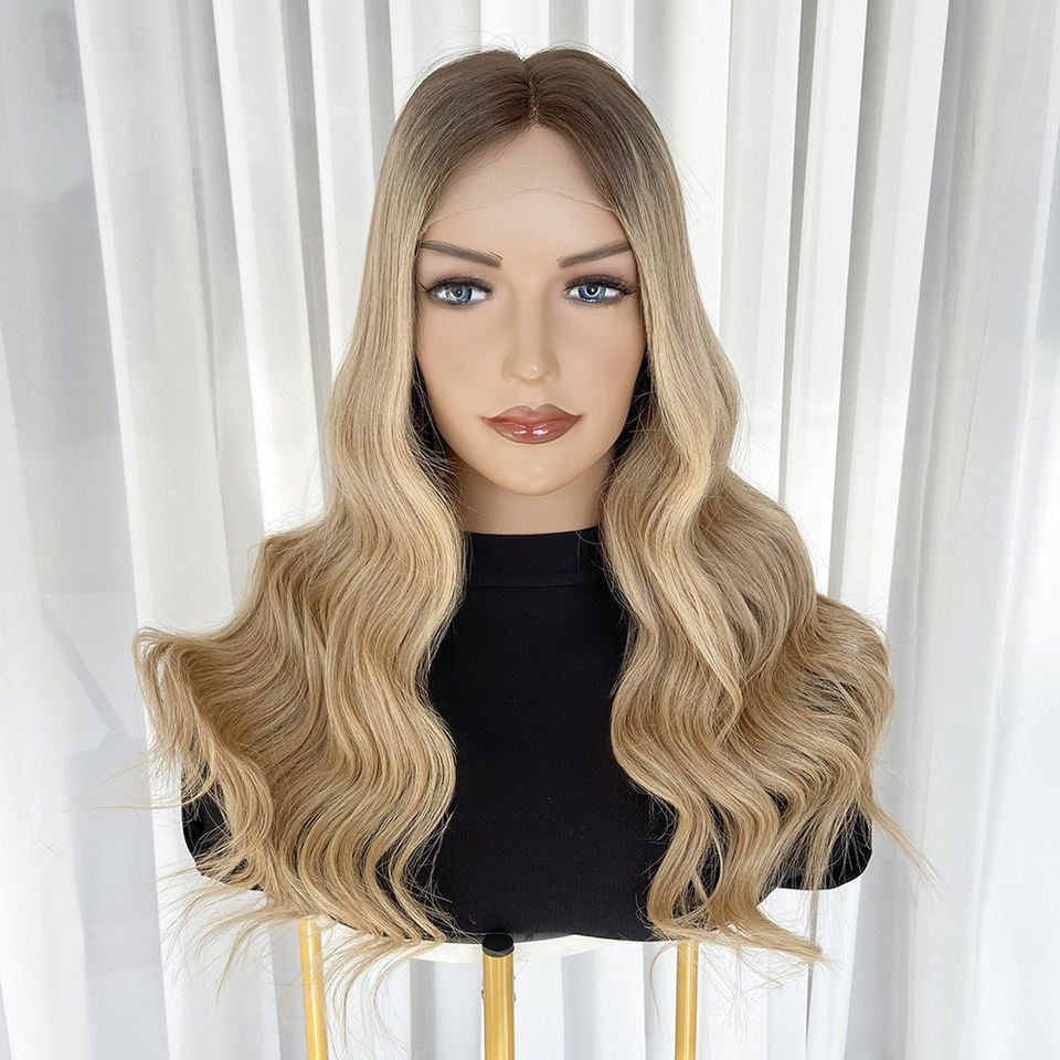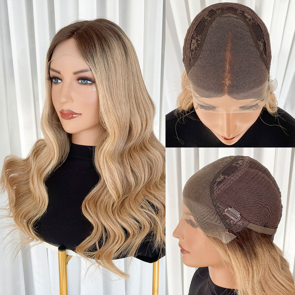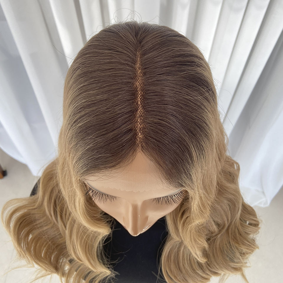 Perruque Lace Frontale en Cheveux Humains Européens, Couleur Ombrée avec Mèches, Cheveux Vierges Bruts à Petits Nœuds pour Femmes Souffrant de Perte de Cheveux # B3-9-23