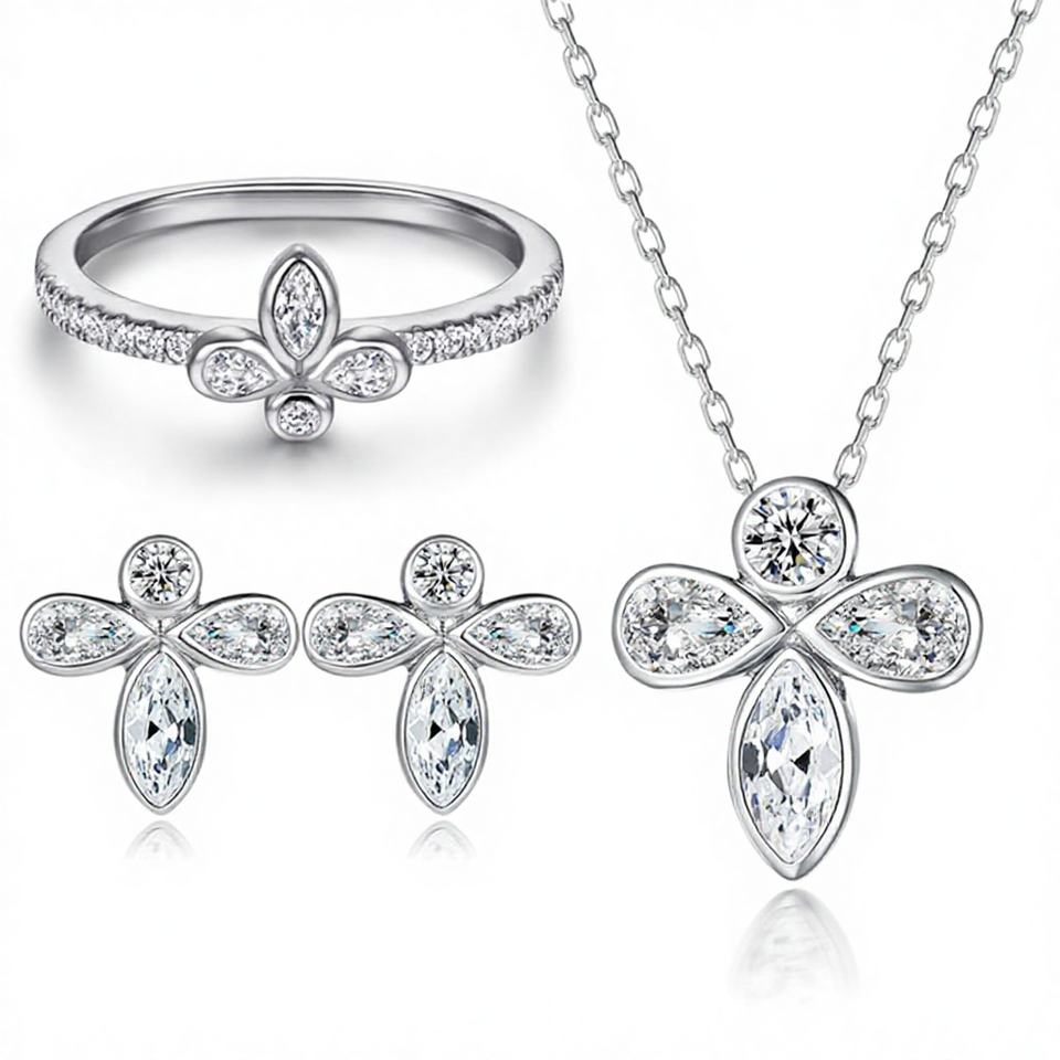 Parure de bijoux de luxe italienne européenne en argent sterling plaqué rhodium avec zircone cubique pour femme, idéale pour mariage, fiançailles, fête ou cadeau
