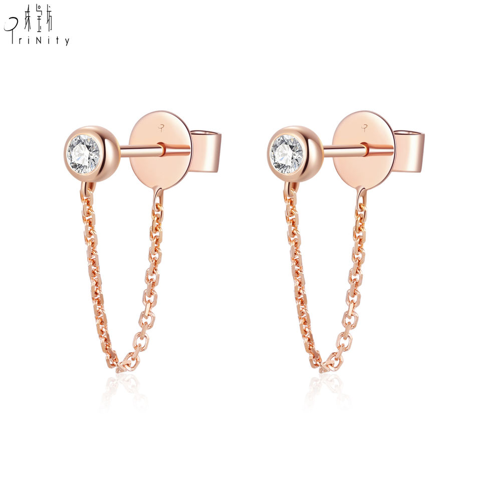 Minimalist Style 18K Rose Gold Real Natural Single Diamond Earring