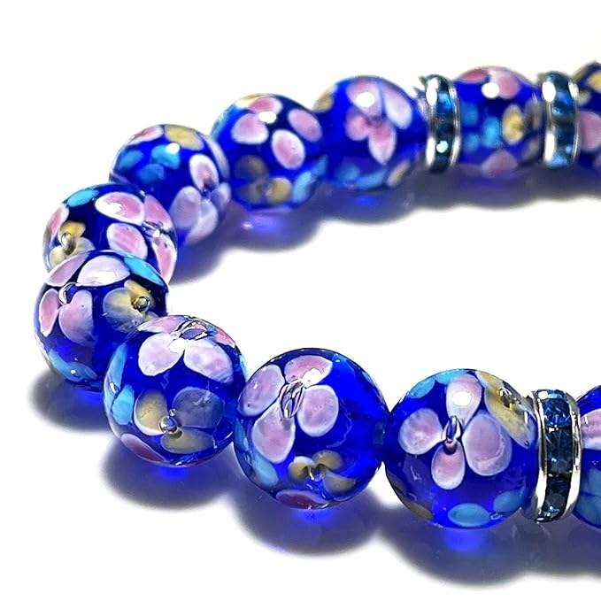 European Murano Handmade Loose Crystal Glass 8mm 4mm Black Blue Jewelry Making-Lamp Work Flower Design Charm Bracelet BEADS