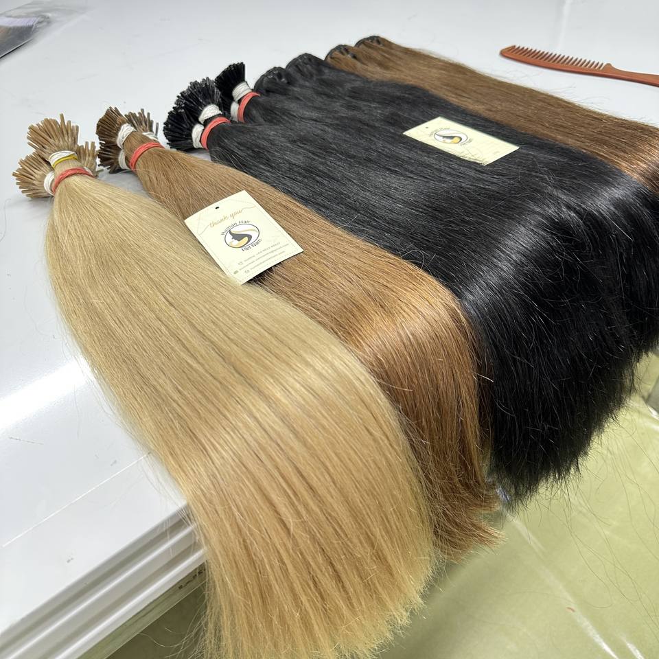 Extensions de cheveux humains bruts européens non transformés Double Drawn Remy I Kératine Tips Vagues et boucles douces et épaisses