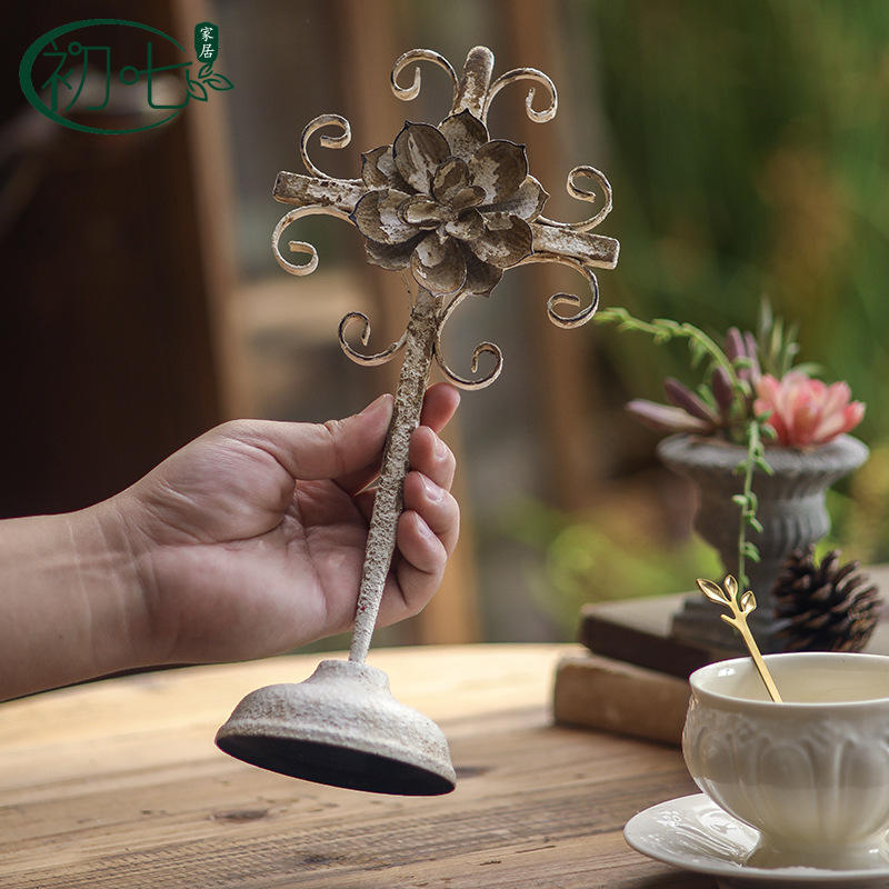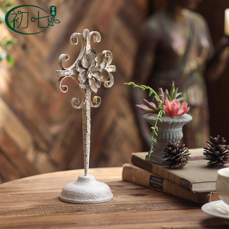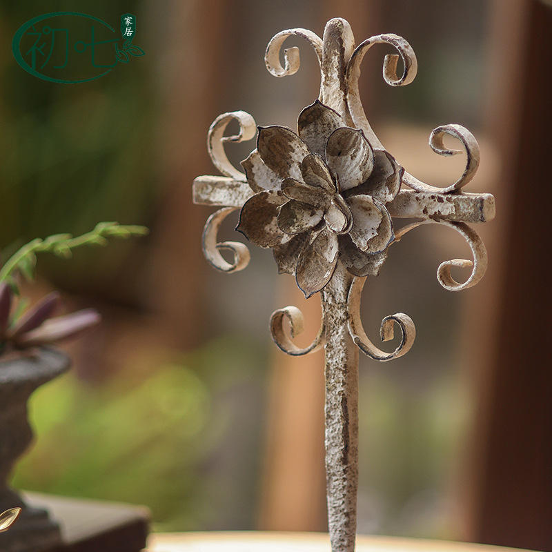Ornement en métal vieilli de style rétro européen, en forme de croix fleurie, artisanat pour la décoration intérieure et extérieure