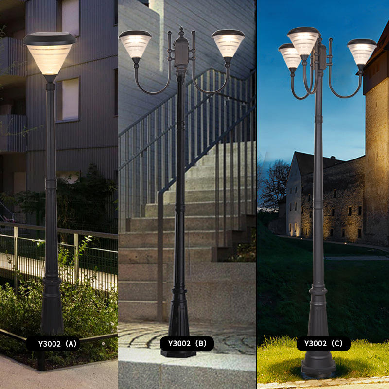 Lampe de jardin LED extérieure de style rétro européen, alimentée par énergie solaire, à double et triple tête, pour cour, parc, villa et éclairage routier