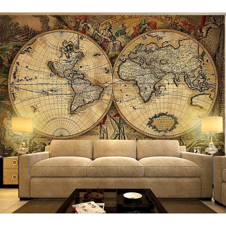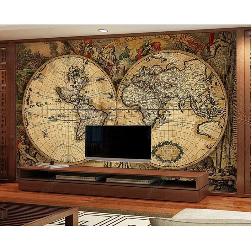 Papier peint européen rétro carte du monde/revêtement mural papier peint 3d papier peint adhésif