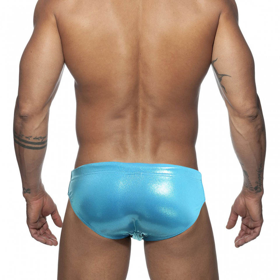 Slip de bain homme européen sexy brillant en Spandex/Polyester, couleur unie, écologique, séchage rapide, pour la natation, le cosplay et la plage