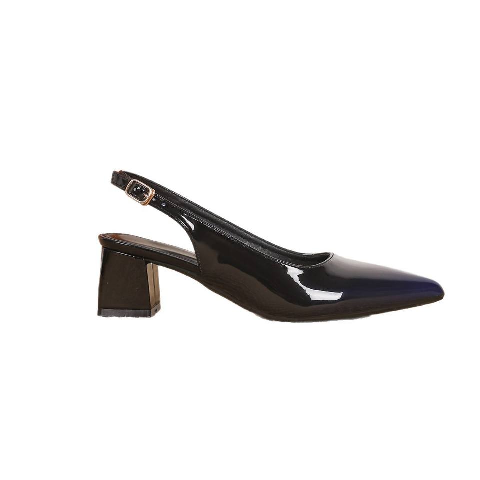 Escarpins élégants à bout pointu taille européenne, talon épais, bride arrière à boucle, dégradé verni