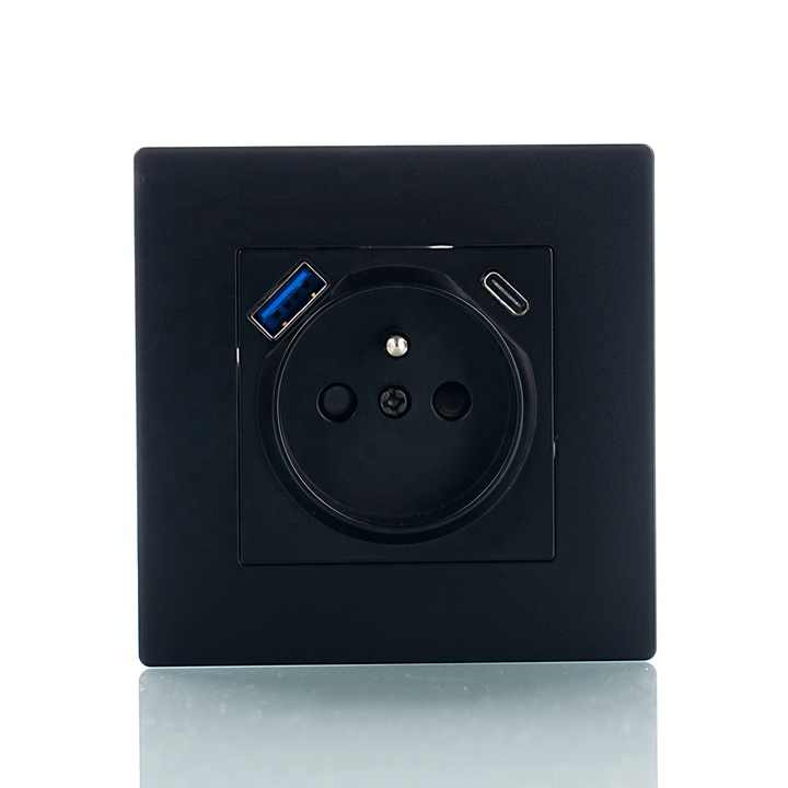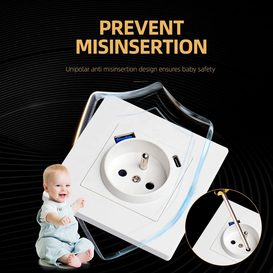 Prises européennes Prises et interrupteurs Qualité PC Prise murale simple française de type 2P + T avec ports de charge rapide USB A + C