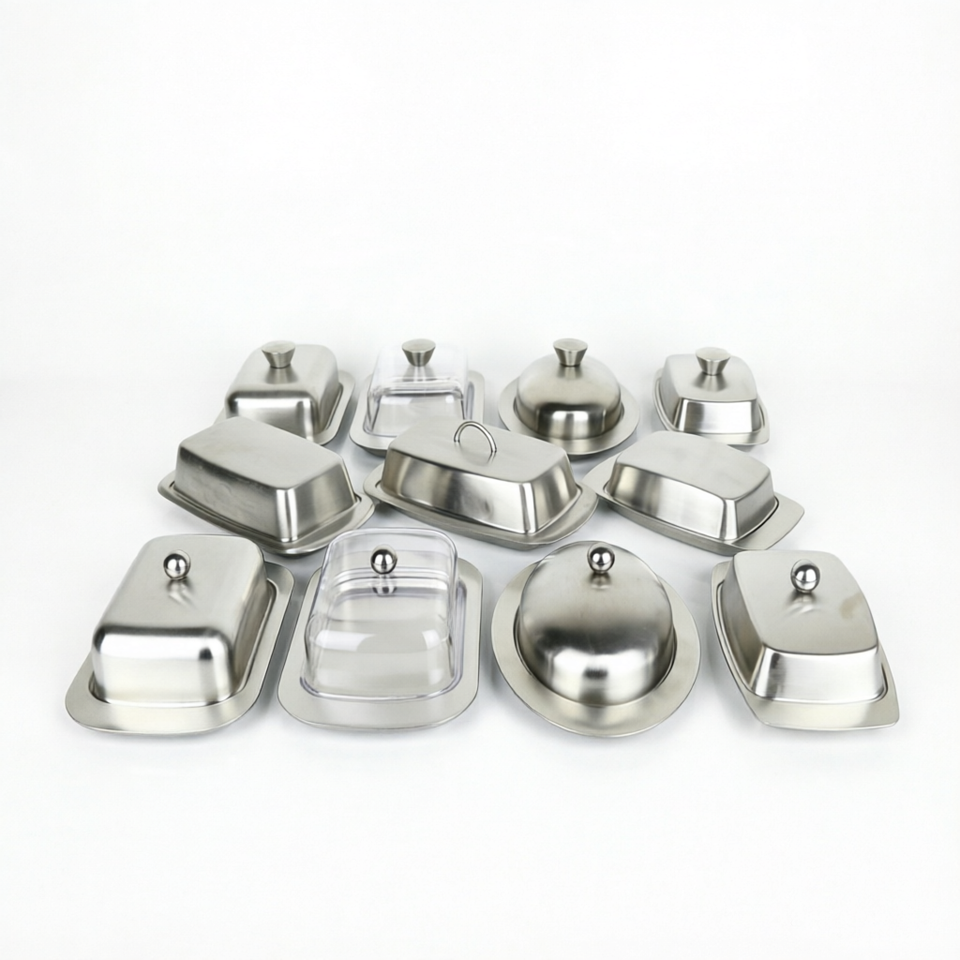 Boîte à beurre en acier inoxydable de style européen, plat à beurre pour dîner, boîte à pâtisserie, boîte à fromage et à pain pour la cuisine occidentale, pour restaurant