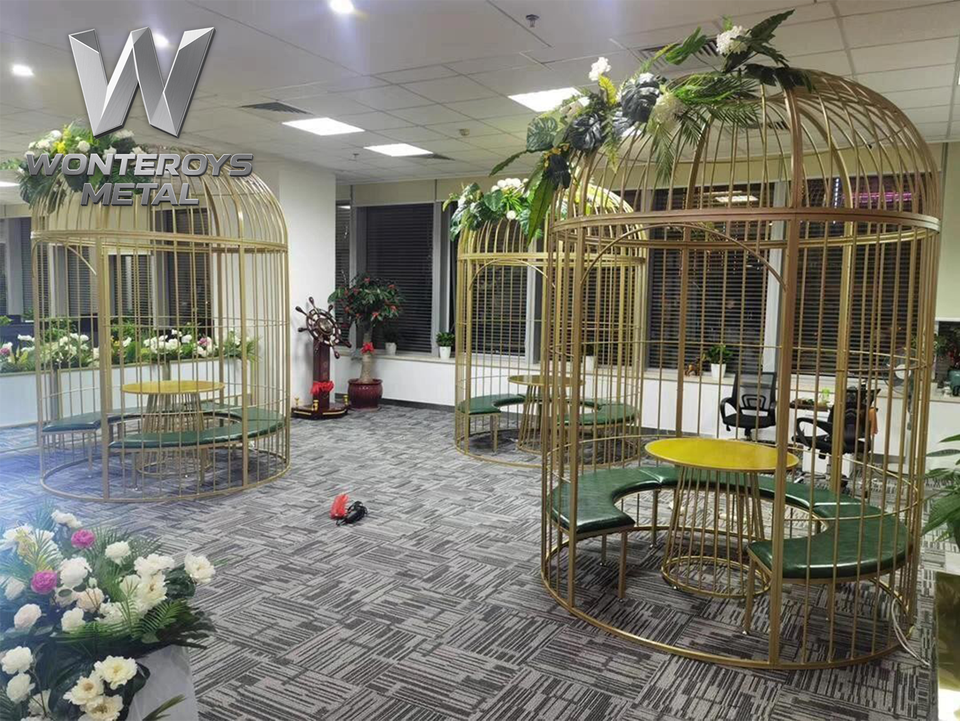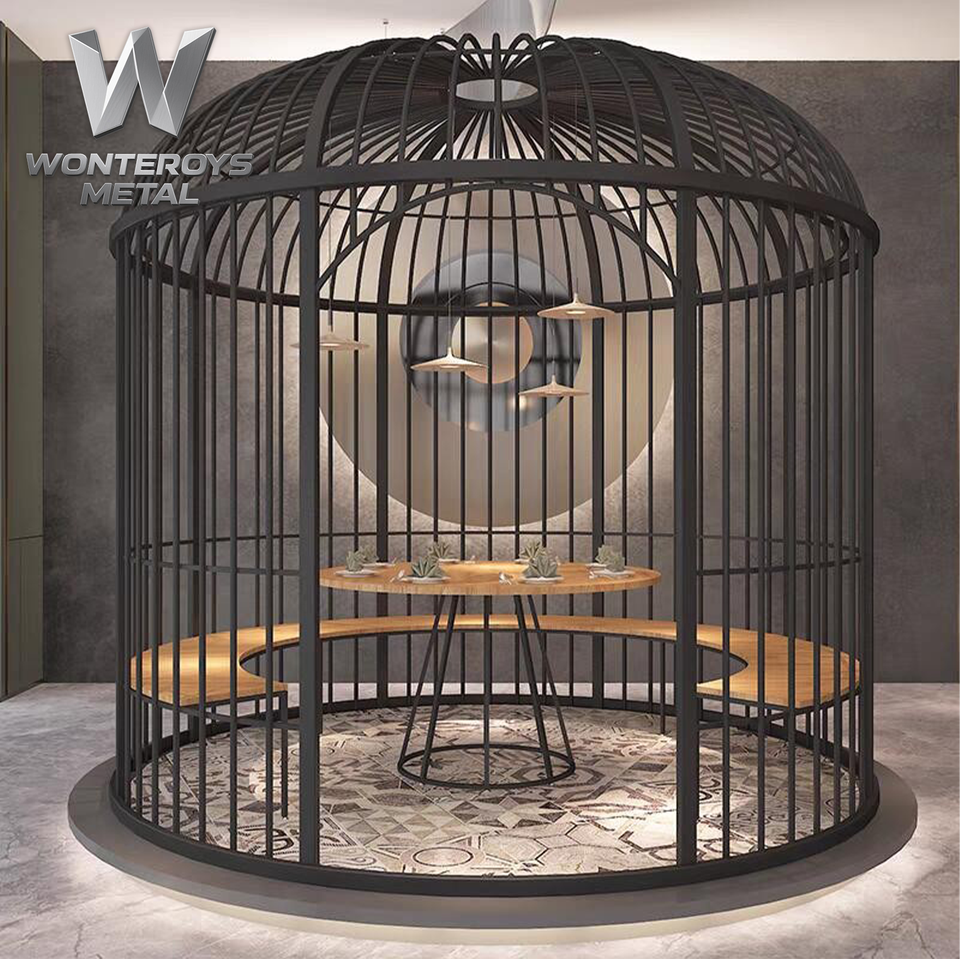 Grande cage à oiseaux en acier inoxydable de style européen, mobilier de restaurant moderne pour la décoration intérieure des cafés et restaurants
