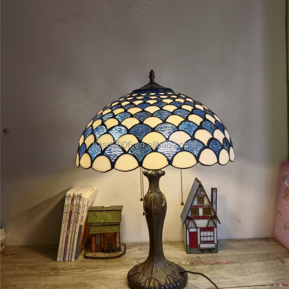 Table Tiffany de style européen 16'' en verre teinté, artisanat fait main, design écailles de poisson en résine pour salon, chambre, café