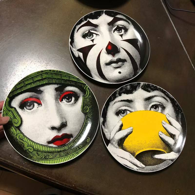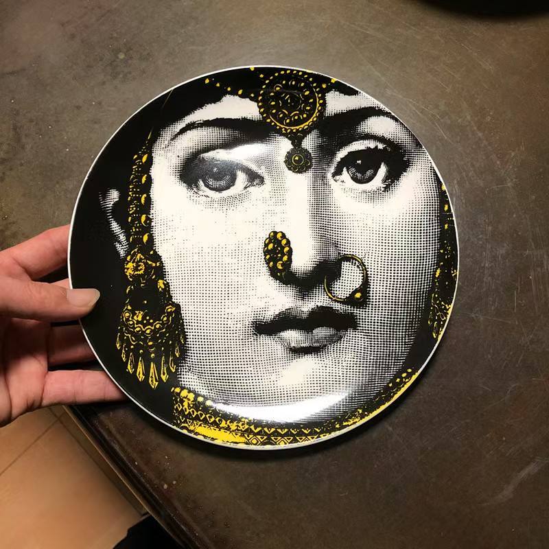 Assiette murale Milan de 8 pouces de style européen, artisanat en céramique, assiette décorative pour la maison, visage humain, assiette d'art pour hôtel