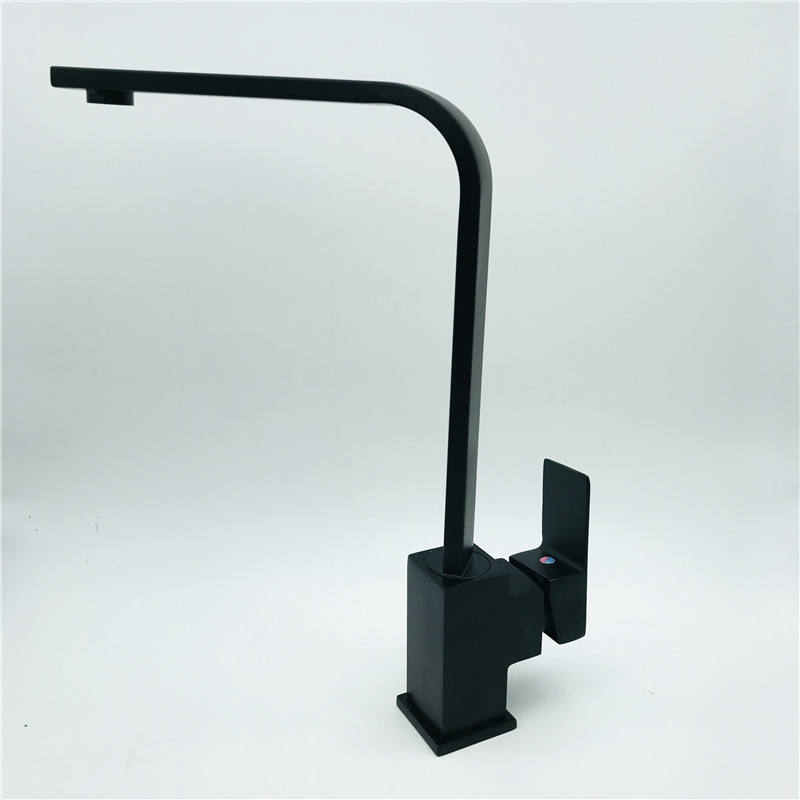 Robinet de cuisine à trou unique carré, style européen, peint en noir, haute précision, eau chaude/froide, rotatif, Water Knows Warmth