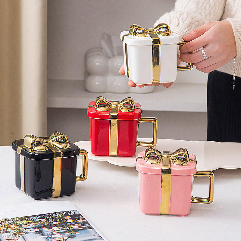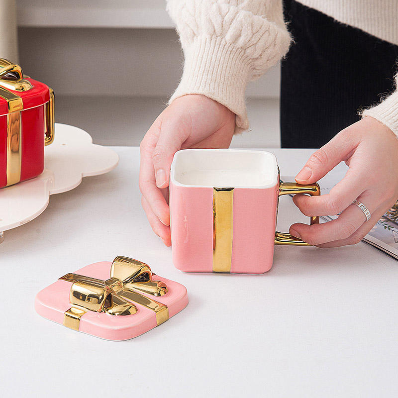 Mug en céramique de style européen avec anse plaquée or, tasse à café et tasse à petit-déjeuner avec couvercle