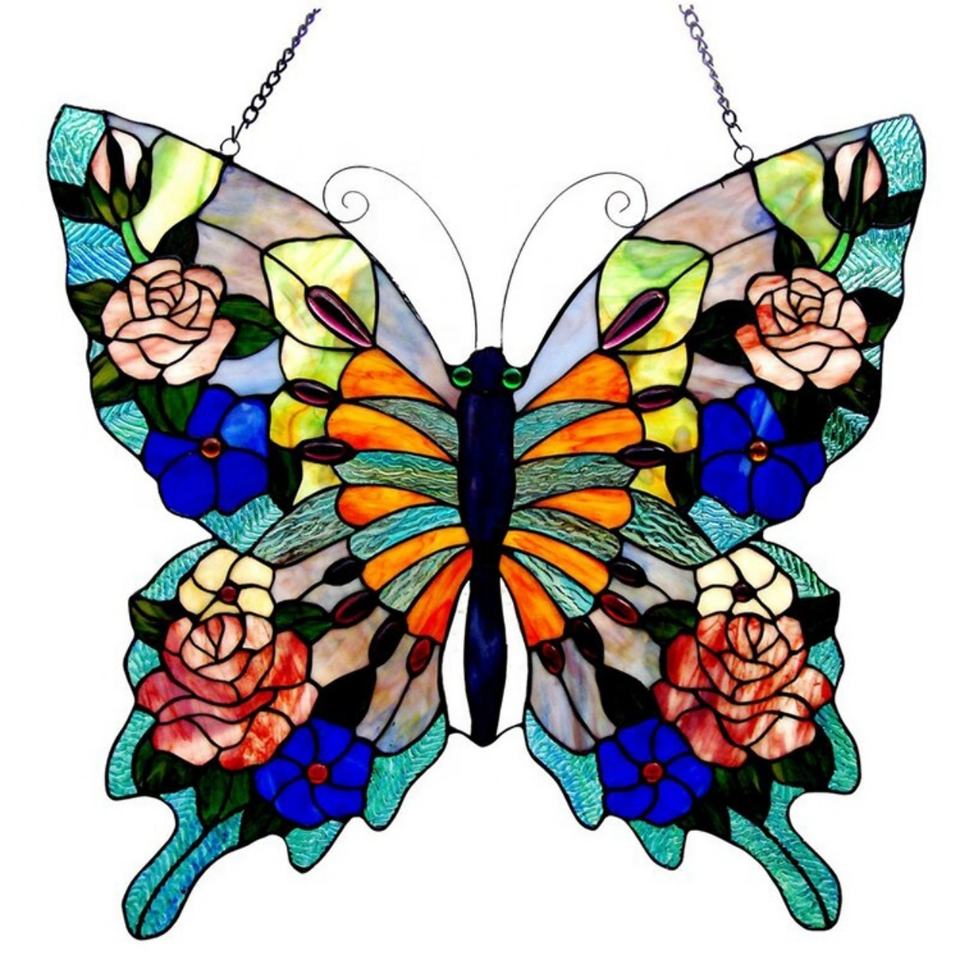 Panneau de fenêtre en verre Tiffany de style européen avec motif papillon, à suspendre pour chambre à coucher ou salon