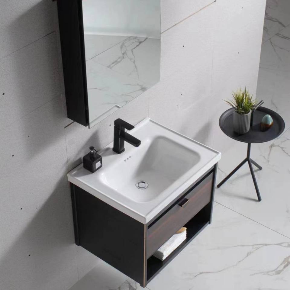 Meuble-lavabo suspendu de style européen marron chocolat avec miroir lumineux intelligent