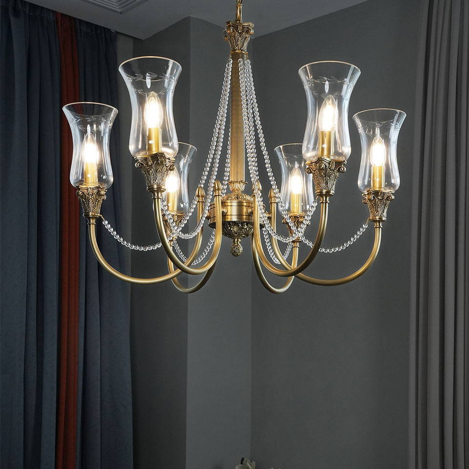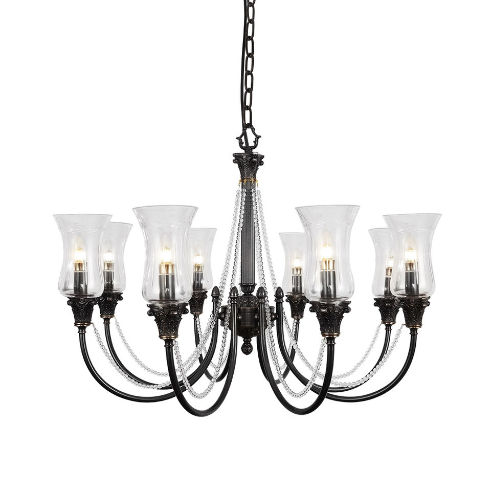 Lustre en métal noir E14 de style européen pour villa, hôtel, restaurant, lustre en verre classique pour salon, chambre à coucher