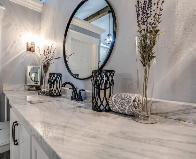 European Style Elegant RTA Luxury Bathroom Cabinets with Marble Countertop Stainless Steel and MDF Carcase Plywood Vanities