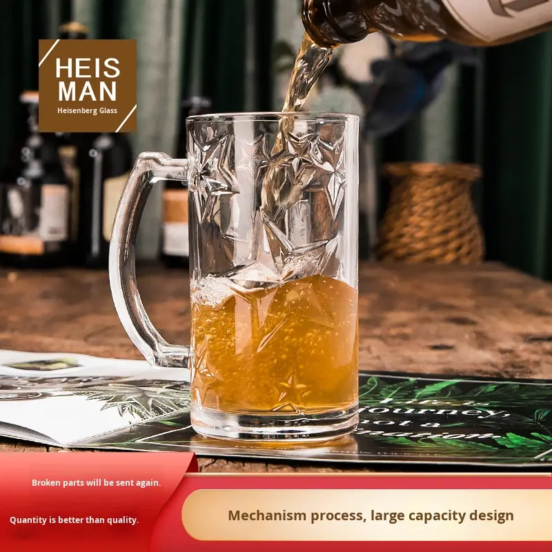 Poignée de tasse en verre à bière Heisenberg de grande capacité en relief épaissi et écologique de style européen pour les boissons froides du marché nocturne