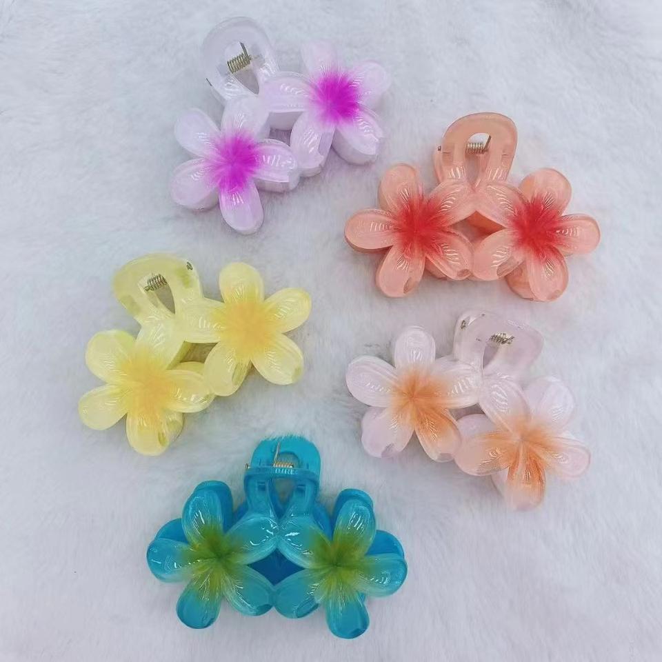 Pince à cheveux style européen Frangipani, dégradé floral, pince requin, accessoires pour cheveux style vacances à la plage