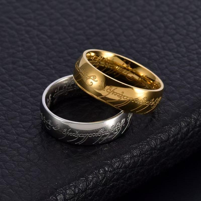 Bague unisexe plaquée or de style européen, grande taille avec motif gravé élégant, galvanisée sous vide pour un usage quotidien