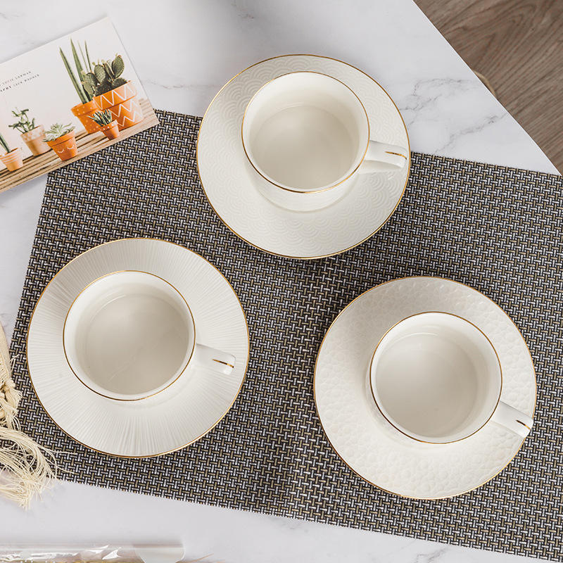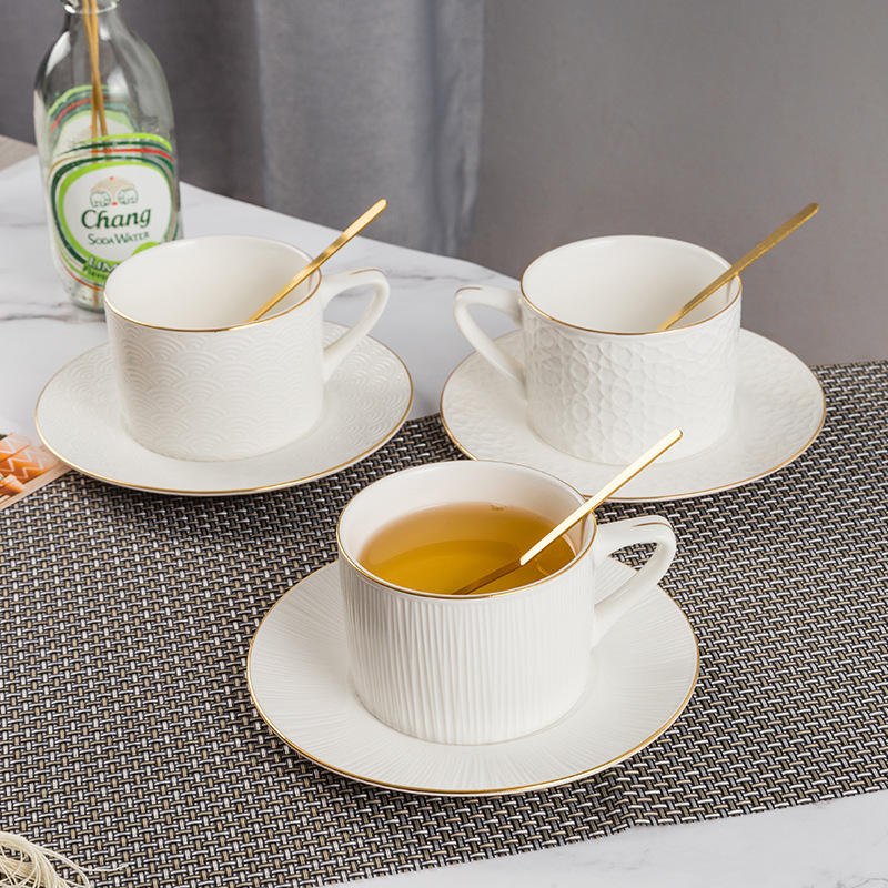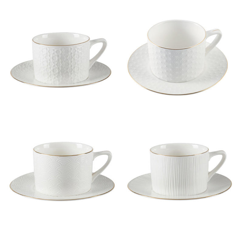 Ensemble de tasses à café en céramique à garniture dorée de style européen Soucoupes Tasses à latte de grande capacité Thé rouge Espresso Moments Thé de l'après-midi anglais