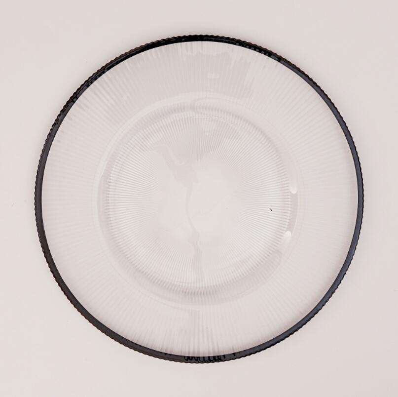 Assiettes de présentation de banquet à rayures demi-lune de style européen, assiettes de service en verre à bord doré, modernes pour mariage occidental