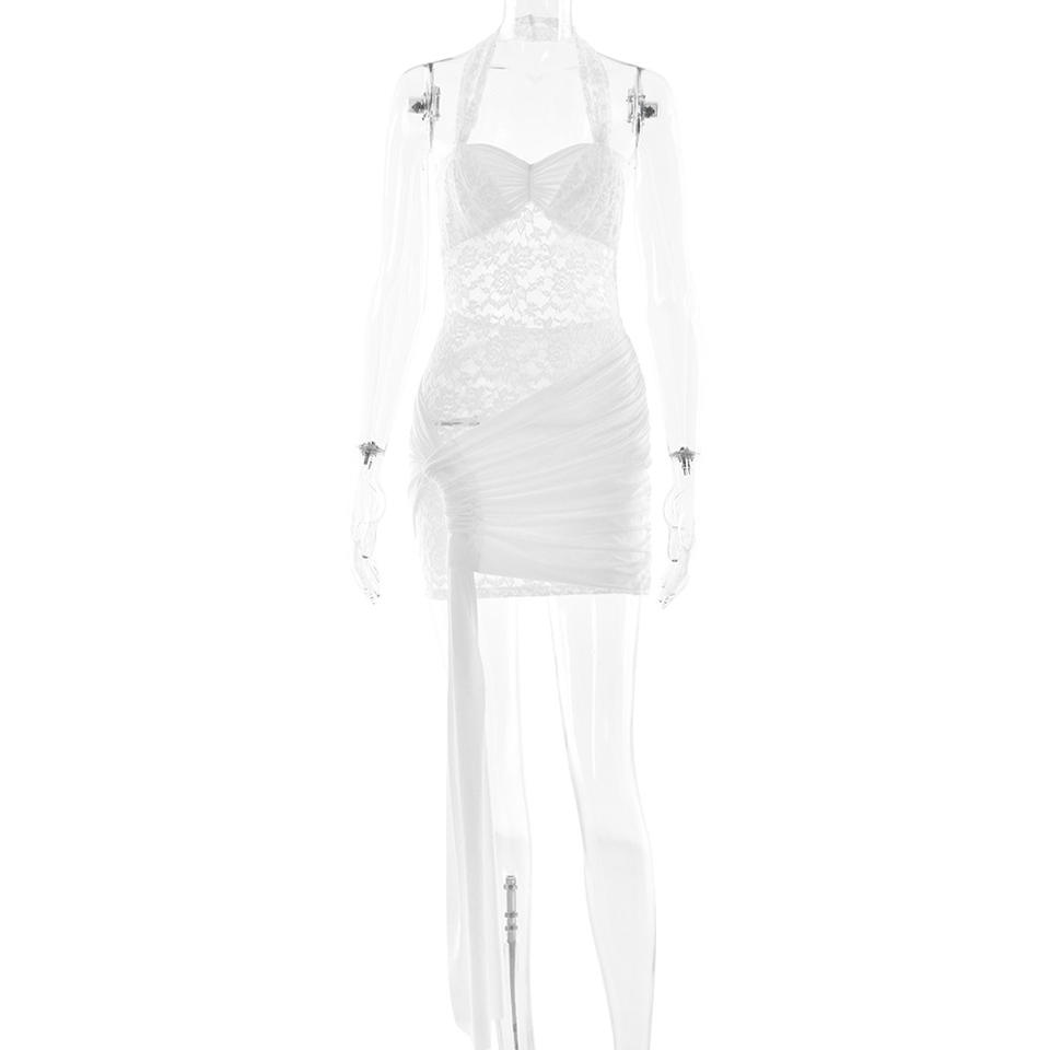 Robe Courte en Dentelle Style Européen, Col Halter, Dos Nu, Moulante, Robe de Cocktail, Couleur Unie, Polyester, Origine Yiwu FDC1252