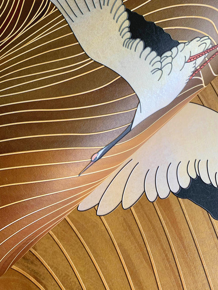 Mots-clés:Papier peint texturé de grues luxueuses dorées 3D de style européen