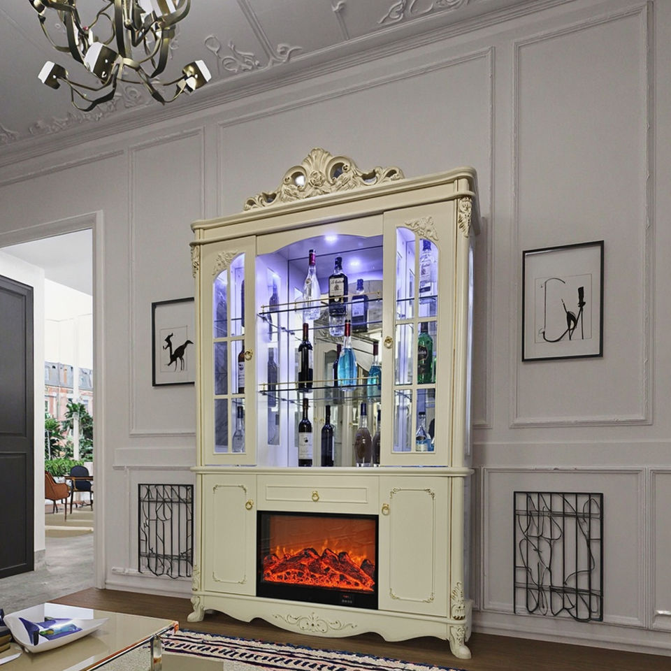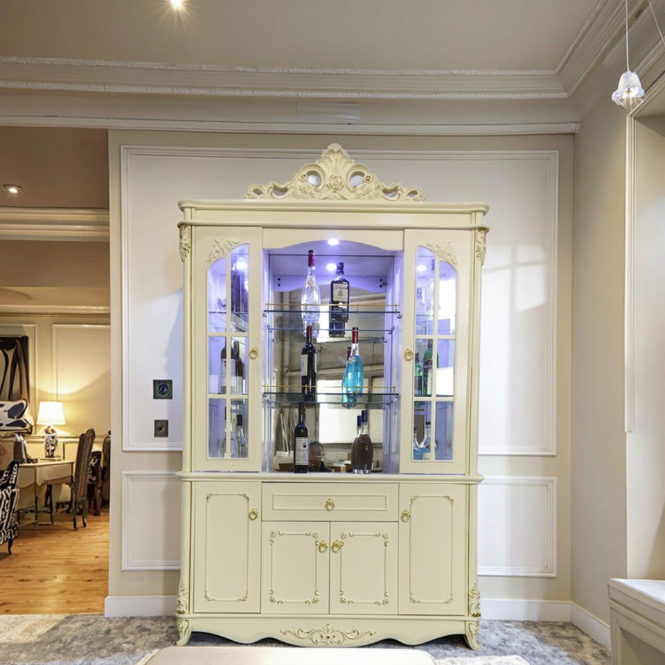 Casiers de grande capacité de style européen Meubles de maison Armoire à vin avec affichage de la peinture Panneau en bois pour le salon Bar Casiers à vin