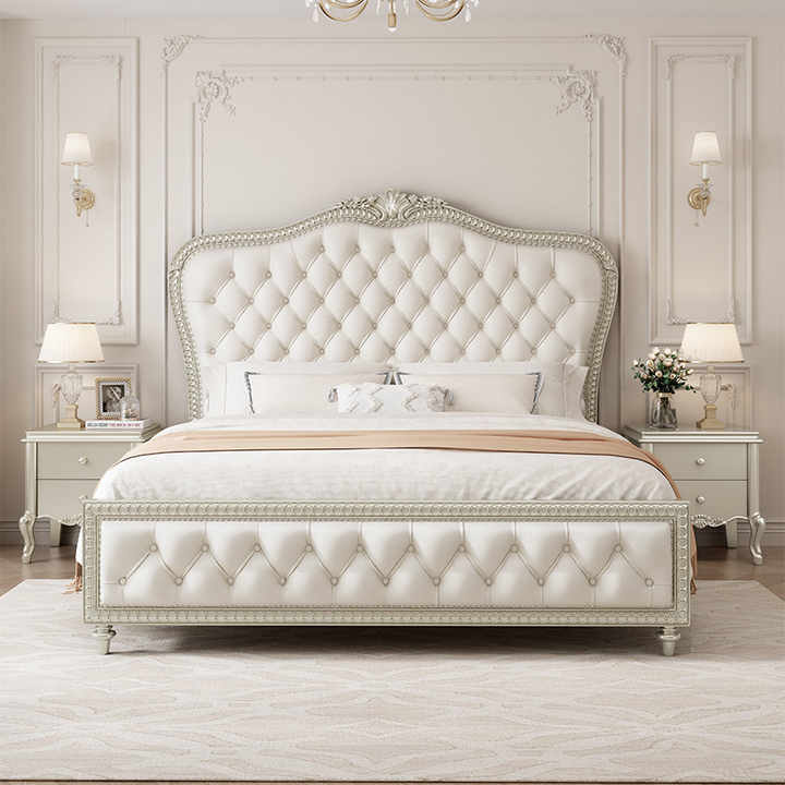 Lit double de style européen, dernières conceptions de tête de lit, ensemble de meubles de chambre haut de gamme de France, lit king size