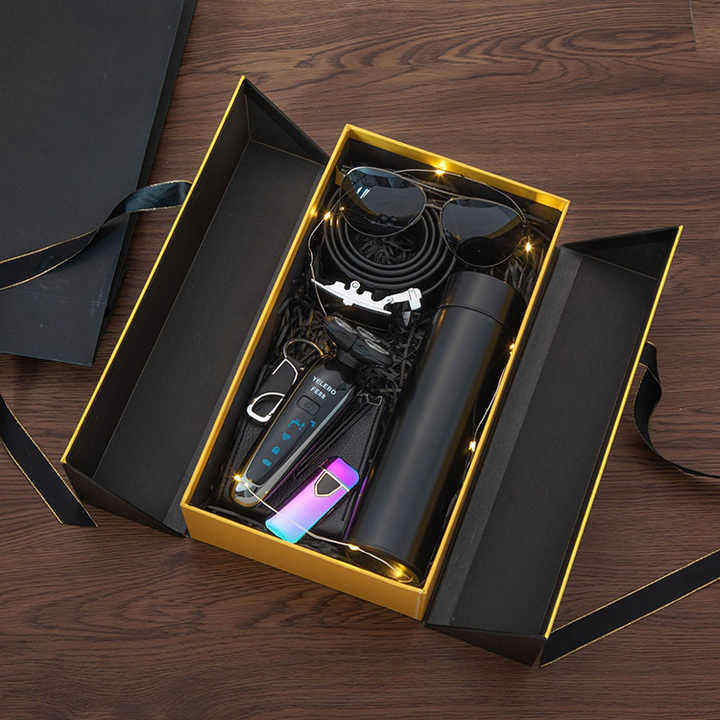 Boîte cadeau vide de luxe de style européen avec ailes d'ange noires, belle et élégante conception d'emballage à deux portes à double ouverture créative