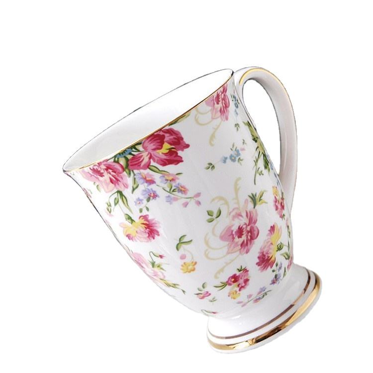 European Style Manual Painting Golden Pastoral Large Capacity Ceramic Cups Bone China Water Cup for Couples