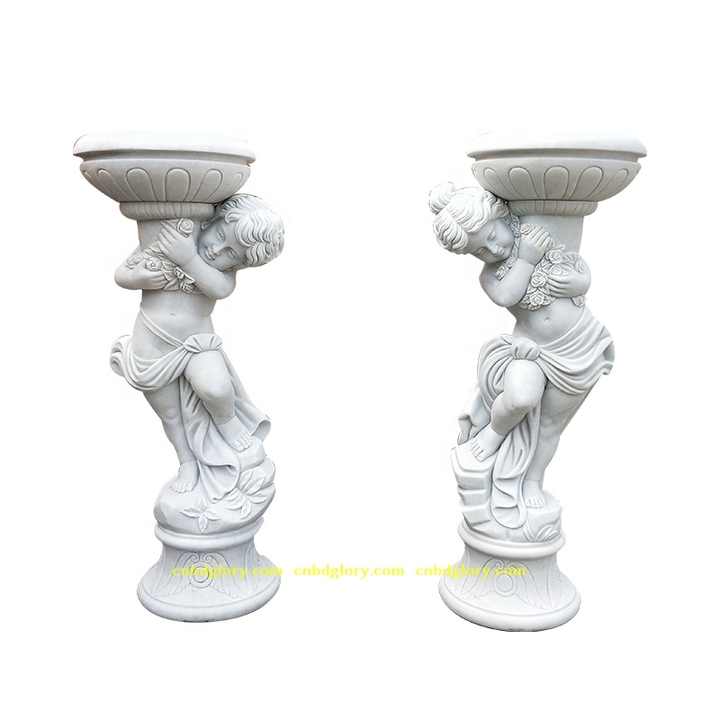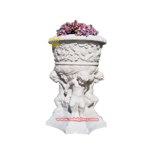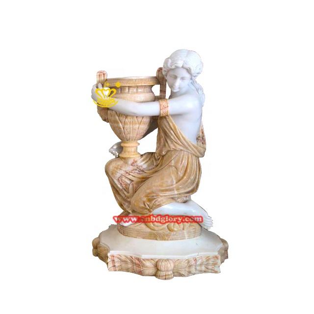 Style européen extérieur jardin rue paysage décoration marbre Statue pilier et Pot de fleur pierre Art Sculpture à vendre