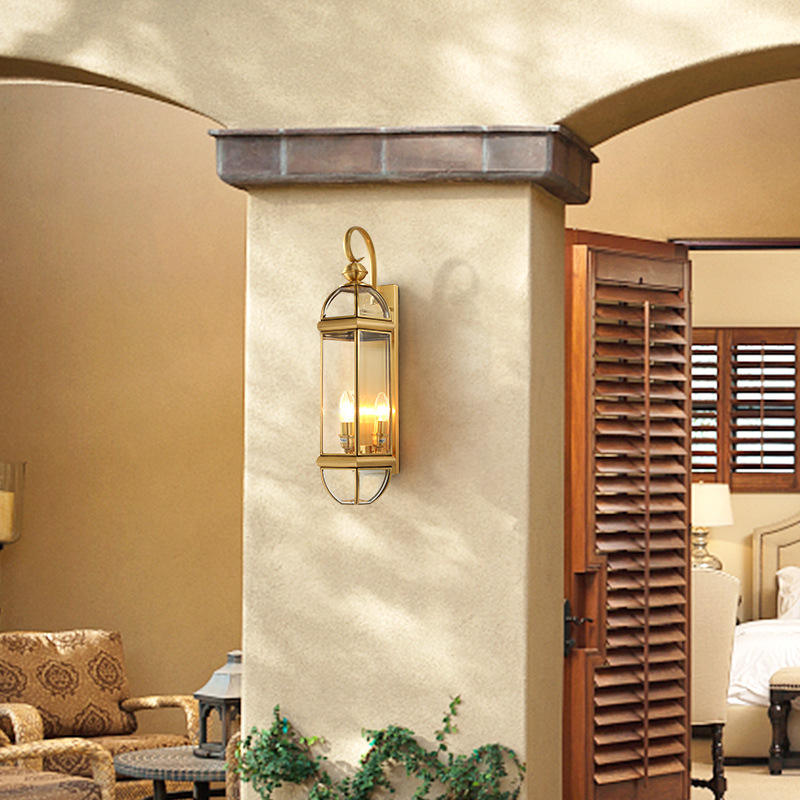 Applique murale d'extérieur de style européen Simple Luxury Villa Garden Corridor Vintage Deco Wall Lamp Classic Brass E14 Outdoor Lights