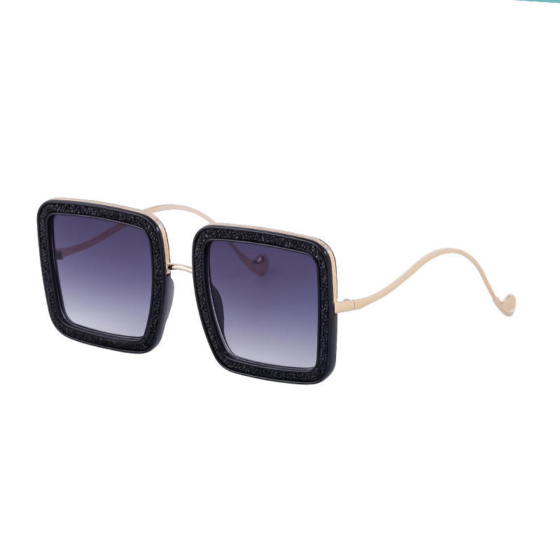 Lunettes de soleil carrées surdimensionnées de style européen pour femmes, monture noire en strass, protection UV400, monture en métal PC ZS 82202