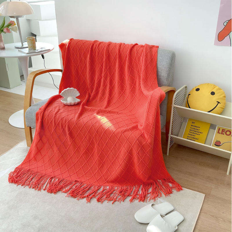 Style européen couleur unie simple sieste gland tricoté lit canapé décontracté décoratif couvertures portables pour l'hiver Style moderne