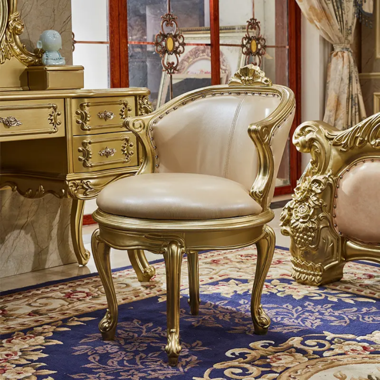 Table de maquillage de style européen en acajou massif doré avec rangement, 5 tiroirs, mobilier de chambre vintage sculpté à la main