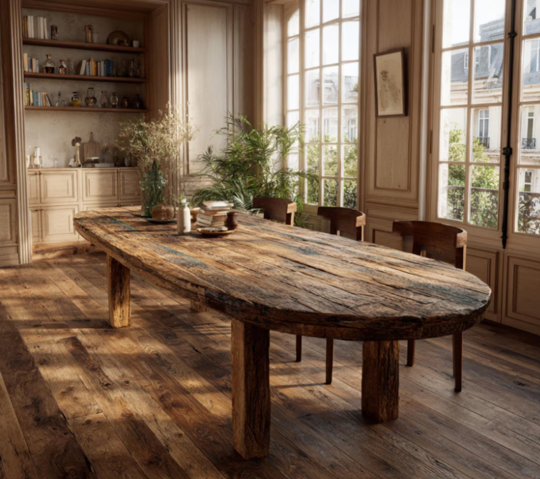 Table à manger en bois de manguier massif de style européen, design moderne, mousse haute densité écologique pour la maison, le bureau, le restaurant, la salle de sport