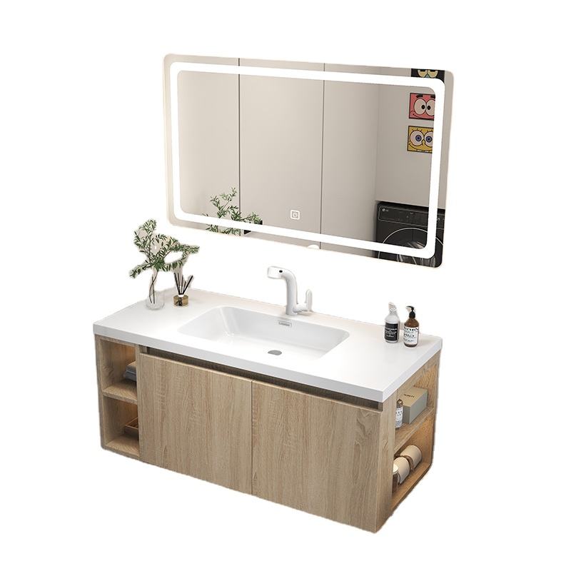 Table de toilette murale en bois massif de style européen, couleur café, avec miroir et lavabo pour villa, hôtel